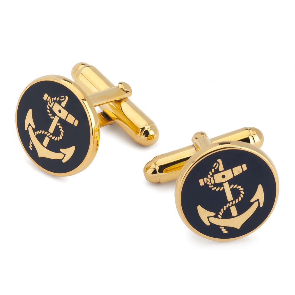 A handsome pair of cufflinks featured a solid enamel inlay and engraved anchor .